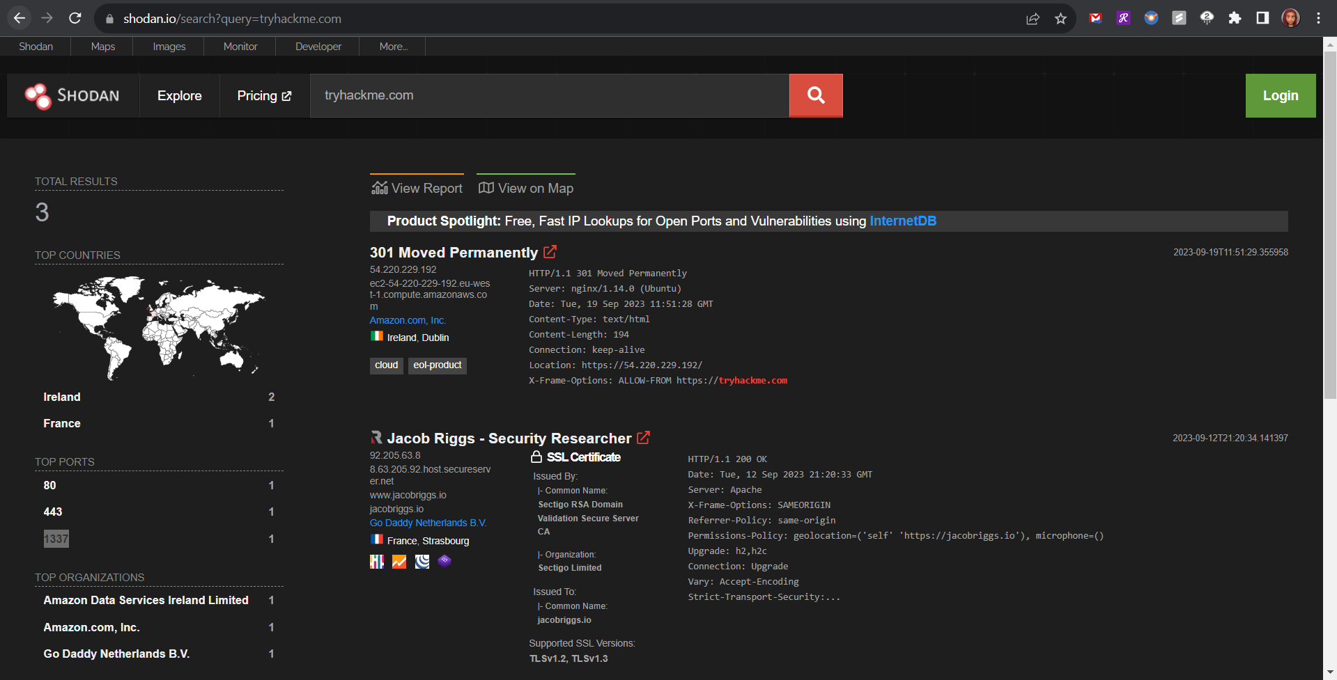 My hands-on learning session had me engaging with the essential tools of cybersecurity reconnaissance. I investigated domain ownership through WHOIS, conducted DNS queries using nslookup and dig, and searched for internet-connected devices with Shodan. I also probed the Google Hacking Database to discover security gaps that are exposed via search queries. Additionally, other resources like the Threat Intelligence Platform, viewdns.info, and Censys offered me a comprehensive overview of internet assets and their potential vulnerabilities.