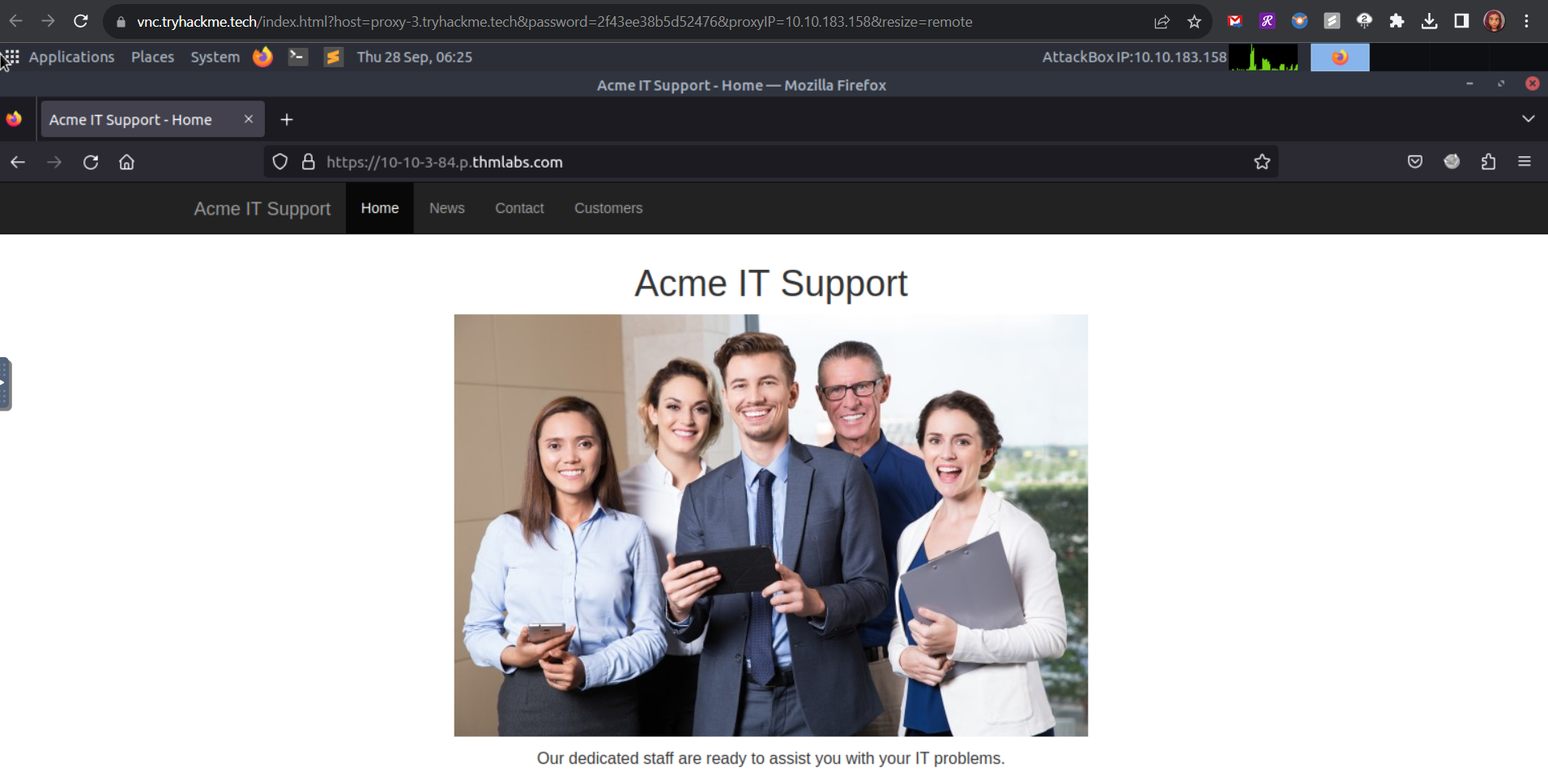 Use either the in-browser attackbox or your own device over VPN to connect to the URL provided for your machine.