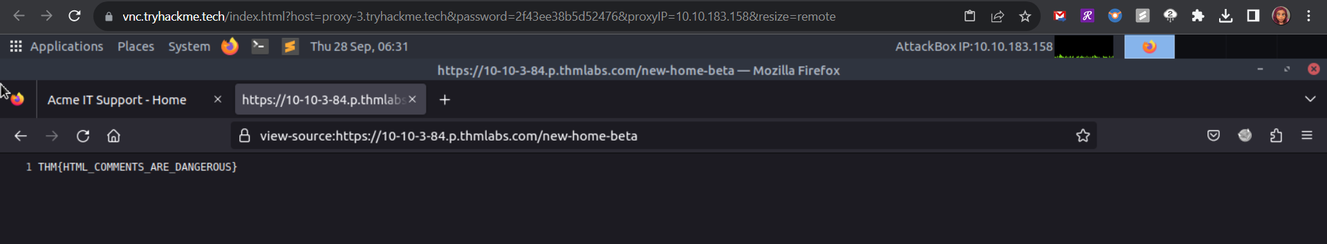 Try viewing the page source of the Acme IT Support website’s homepage. While a complete explanation of the code is beyond the scope of this room, we can highlight critical elements: