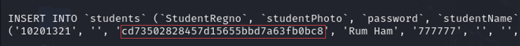 The note contained information about a student registration database, but more interestingly, it included a password hash. This hash seemed like it could be the key to accessing additional resources or gaining further control over the system.