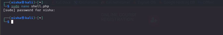 Before uploading, I started a netcat listener on my Kali attack machine: