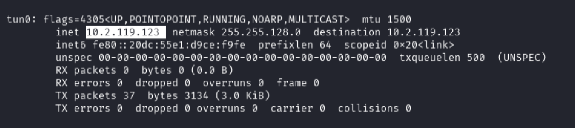 First, I verified my Kali VM’s IP address using the ifconfig command. My IP was 10.2.119.123.