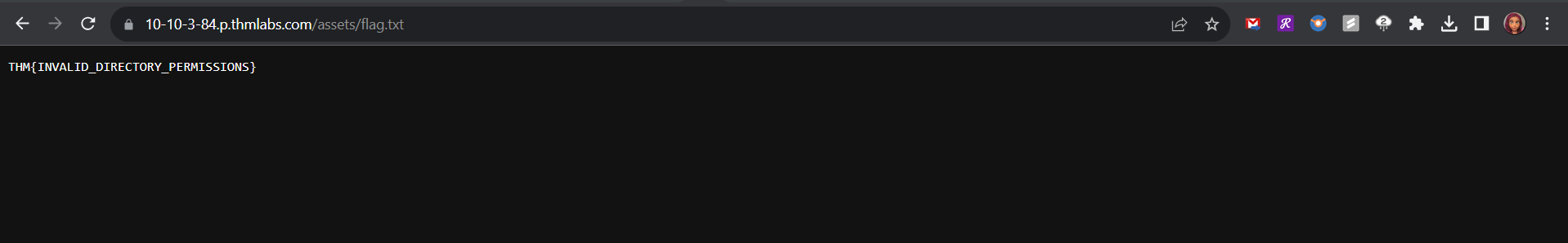 Answer: THM{INVALID_DIRECTORY_PERMISSIONS}