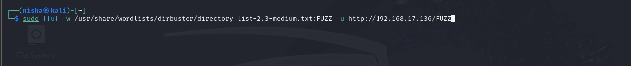 ffuf -w /usr/share/wordlists/dirbuster/directory-list-2.3-medium.txt:FUZZ -u http://192.168.17.136/FUZZ