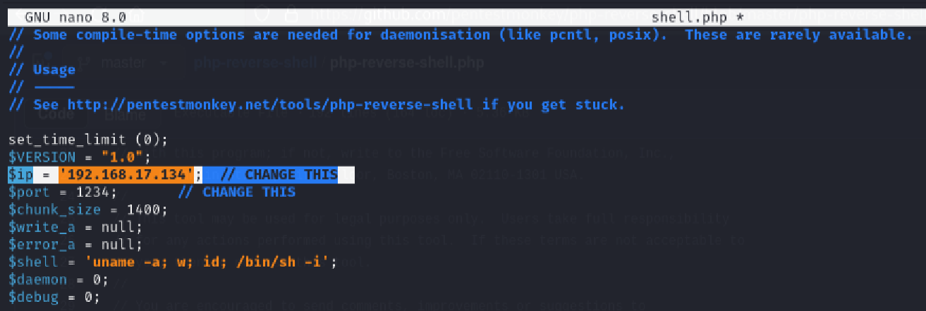 I prepared a PHP reverse shell using the Pentest Monkey payload: