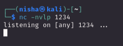Before uploading, I started a netcat listener on my Kali attack machine: