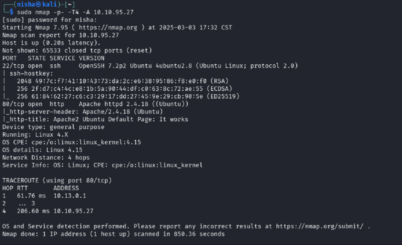 nmap -p- -T4 -A 10.10.95.27